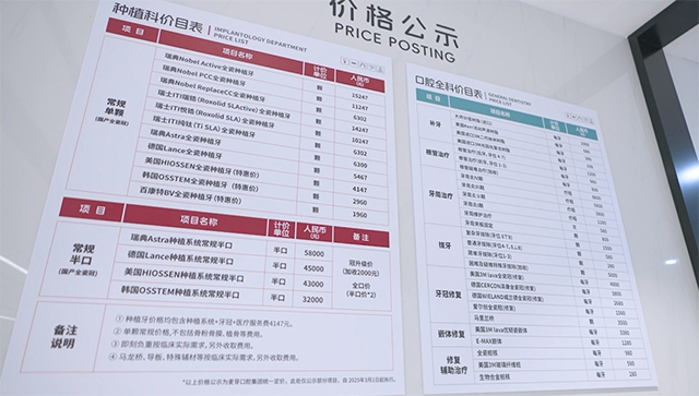 相比之下,深圳麥芽牙科的收費則顯得相當透明,大堂設有清晰的價目表,所有收費明碼實價,讓你在治療前已心中有數。例如,原價人民幣618元的「深層洗牙套餐」服務(包括洗牙、噴砂、拋光、口腔檢查及拍片檢查),現時使用文末鏈結預約即可免費享用。即使是其他服務,價格也相當實惠:例如使用3M樹脂補牙最平只需人民幣198元/隻;普通剝牙介乎人民幣280至580元/隻;植牙則視乎不同品牌,由人民幣1,960至15,247元不等。
