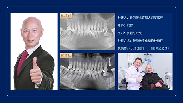 麦芽口腔成立6年以来,已有数位名人明星选择在麦芽口腔做种植牙。其中有:香港喜剧大师罗家英、香港著名影星程东、TVB演员古明华、为深圳建设做出杰出贡献的工程兵、军嫂,退休记者等明星名人……以及无数饱受缺牙之苦的缺牙人。